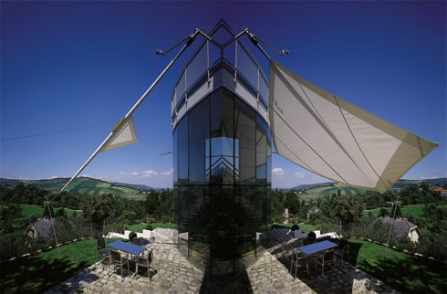 SUN SQUARE SISTEM SONČNIH JADER JE SISTEM ZASENČEVANJA VELIKIH BALKONOV, VRTOV IN TERAS. PRI HITROSTIH VETRA, VEČJIH OD 40 KM/H, SE SONČNO JADRO S POMOČJO ELEKTROMOTORJA SAMOSTOJNO NAVIJE NA CENTRALNO GRED. |